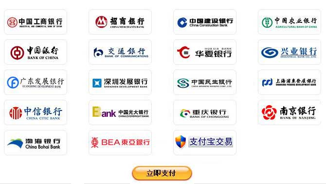 全面支持以下全國19家銀行的各種信用卡、借記卡 (儲蓄卡)以及支付寶?,F(xiàn)在進行網(wǎng)上支付